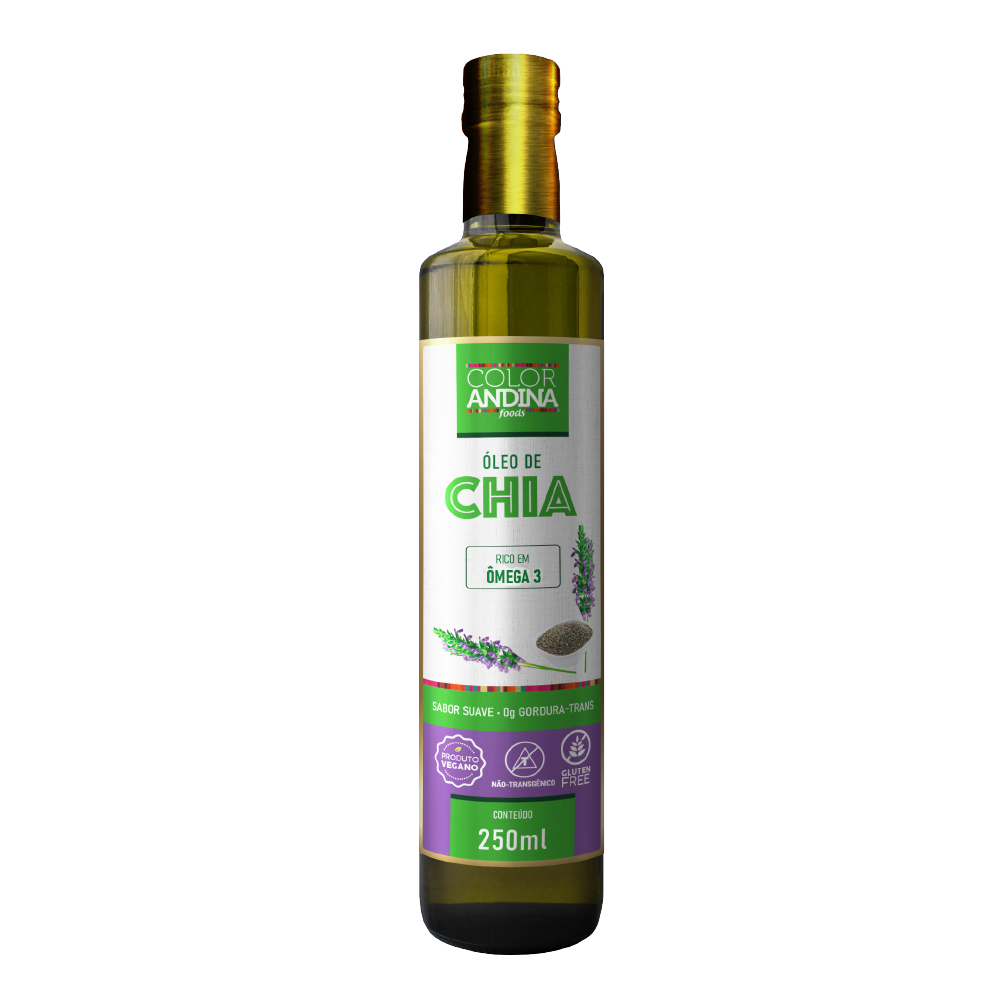 Aproximadamente 25-40% das sementes de chia são compostas por óleo, e destas, impressionantes 63% são formados por ácidos graxos ômega-3 (ácido alfa-linolênico) e ômega-9. Uma dose diária de nosso Óleo de Chia puro atende a 99% do valor diário de referência para ômega-3.